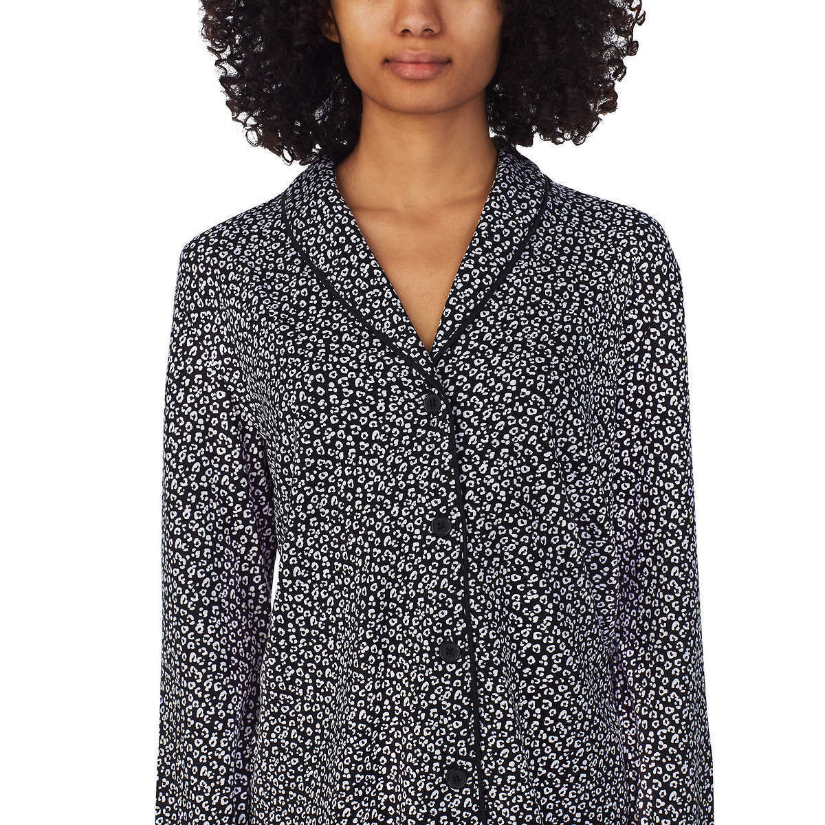 - Long sleeve fully button down top with notch collar