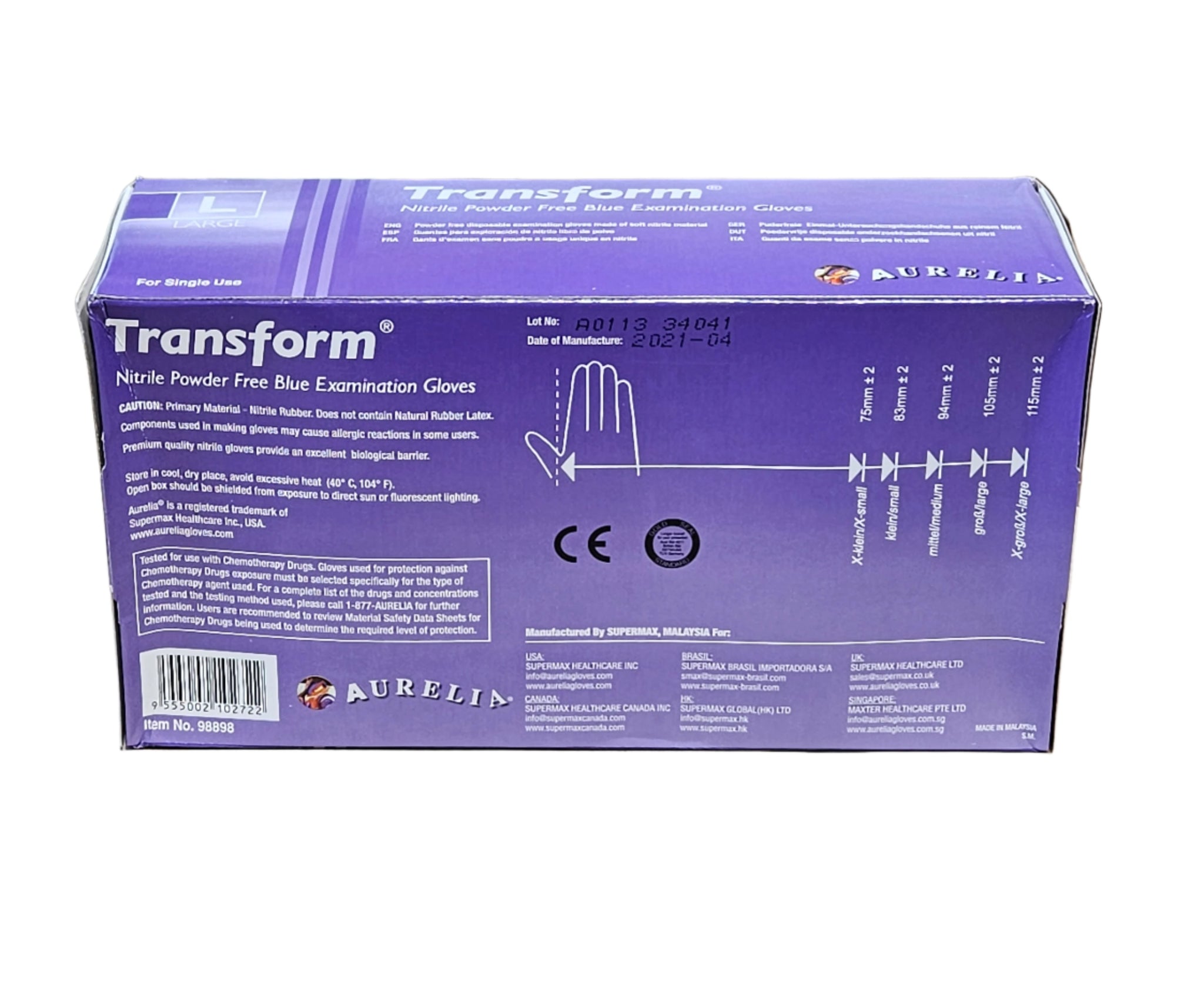 [High-quality Nitrile Gloves] Aurelia Transform gloves are more thicker, stronger and more wear-resistant than typical vinyl gloves. These gloves shape the hand, provide comfort and responsive grip, are ideal for palms and fingertips, and have optimal sensitivity.