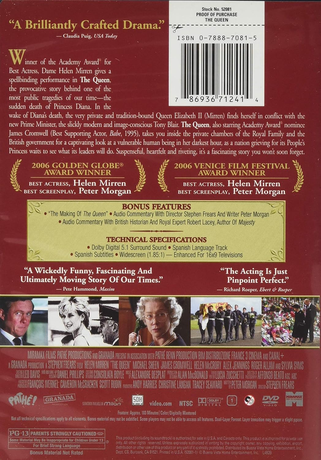 Helen Mirren delivers a royally stirring performance as Queen Elizabeth II in Stephen Frears's fictional romp, THE QUEEN. The year is 1997, and Great Britain has a newly elected prime minister, the youthful, optimistic Tony Blair (Michael Sheen). In Buckingham Palace, the Queen doesn't appear to be fazed by Blair's arrival. Then again, she doesn't appear to be fazed by anything. But when Diana--her son's ex-wife and the mother of her grandchildren--is killed in a tragic car accident, her authority is tested as never before. While the Queen Mother (Sylvia Syms) and Prince Philip (James Cromwell) agree with her decision to remain at their holiday estate in Balmoral and not publicly acknowledge the tragedy, Tony Blair feels differently. Unfortunately, so do the English people. Making matters worse is the out-of-control media, which has begun to castigate the queen for her silence. In order to retain her grip on the country that she has served for so many years, she must swallow her pride and let the world know that she does, in fact, care.With THE QUEEN, the consistently superior Frears (DIRTY PRETTY THINGS, DANGEROUS LIAISONS) strikes once again. Peter Morgan's devilishly clever script provides the foundation, but the expert performances are what make the film such an exhilarating ride. What begins as a humorous critique of the stuffy royal family becomes an unexpectedly sympathetic portrait of a woman who carries the weight of a nation on her shoulders.This film was chosen to be the opening night selection of the 44th New York Film Festival organized by the Film Society of Lincoln Center.