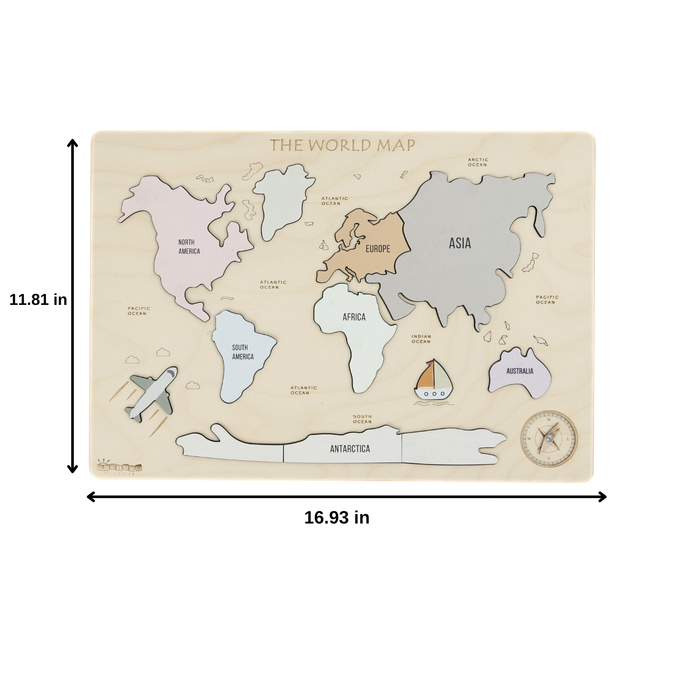 World Map Montessori-Style Wooden World Puzzle for Kids (Ages 3+) – Non-Toxic Educational Map of Continents & Oceans
