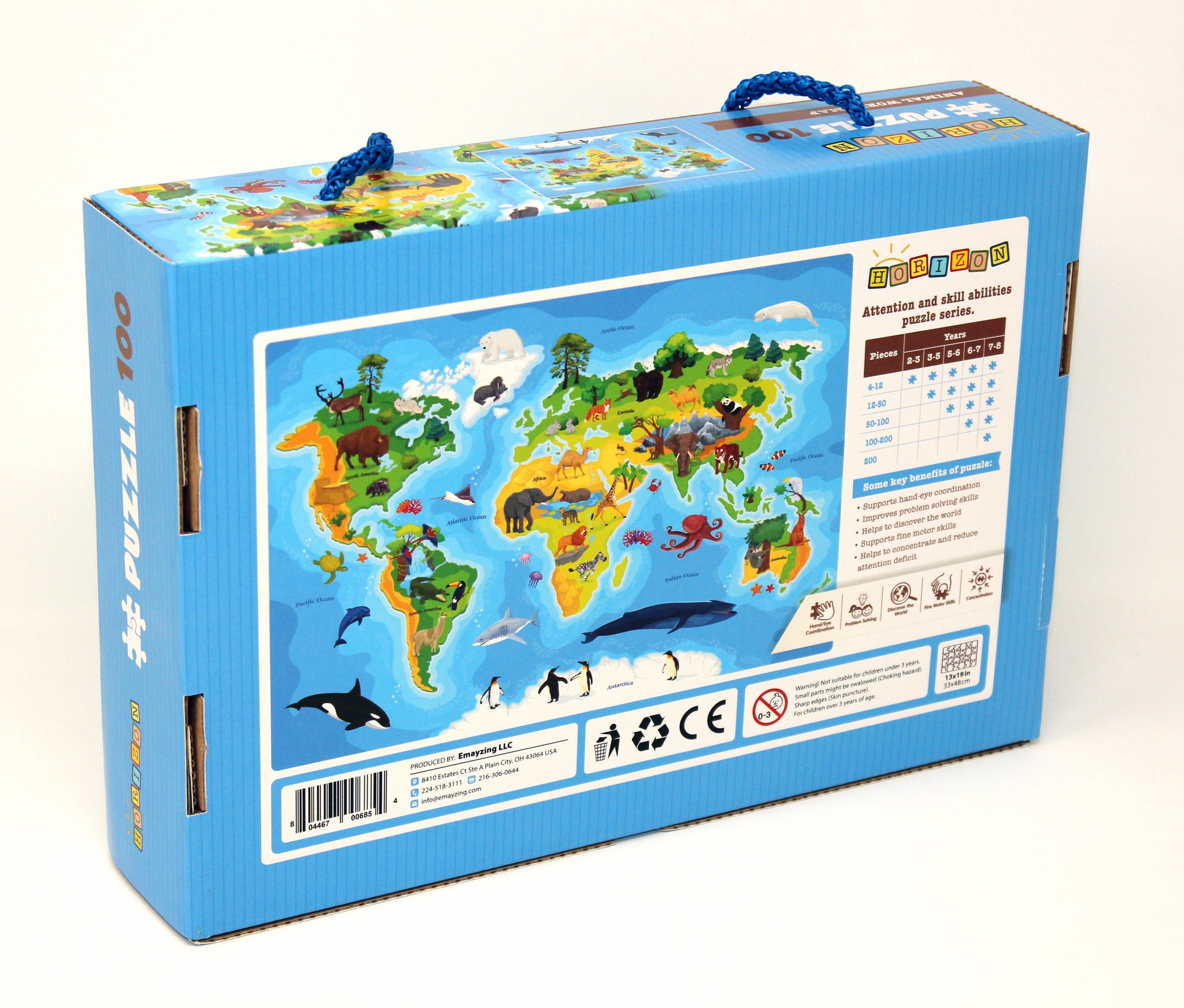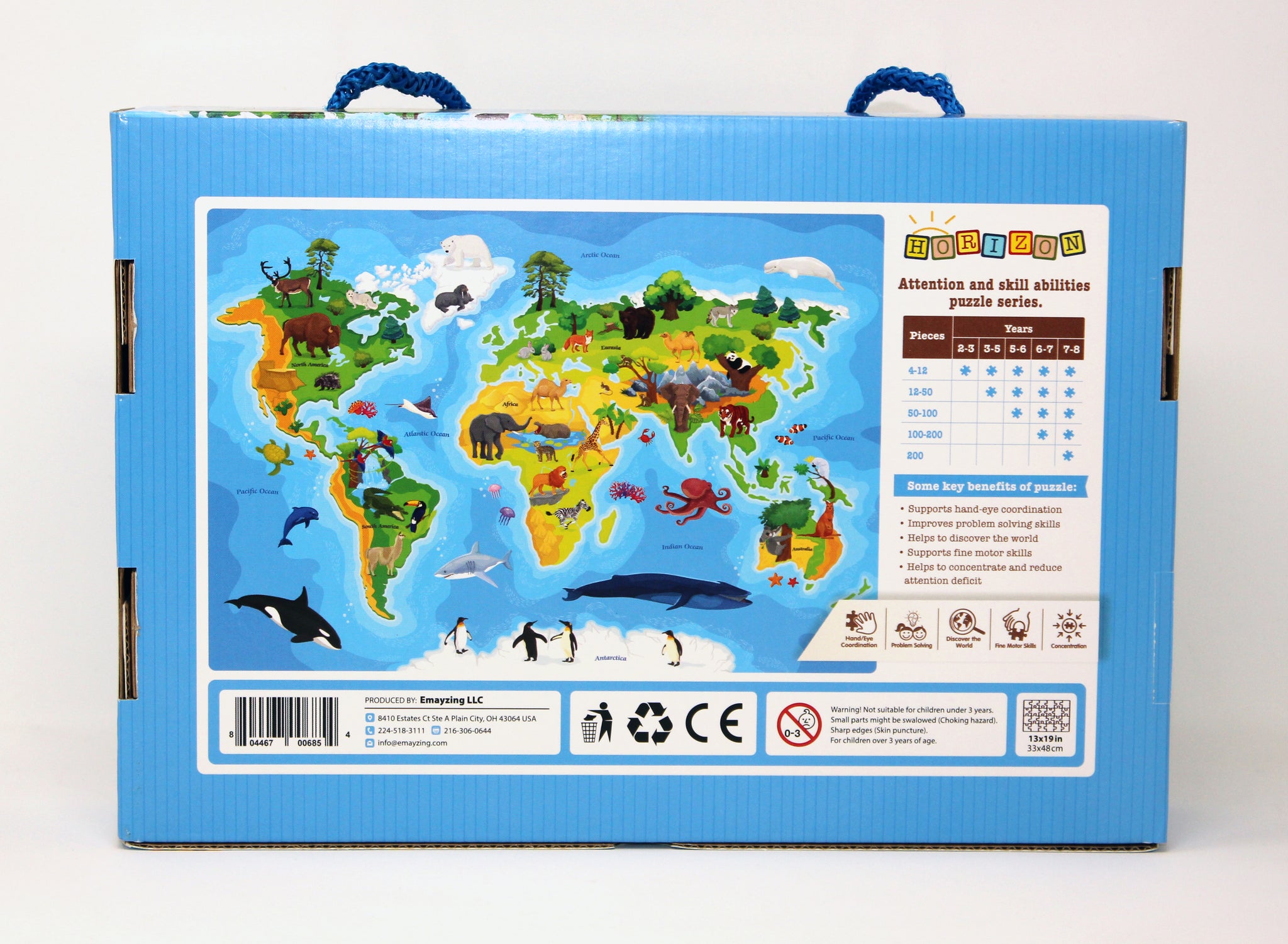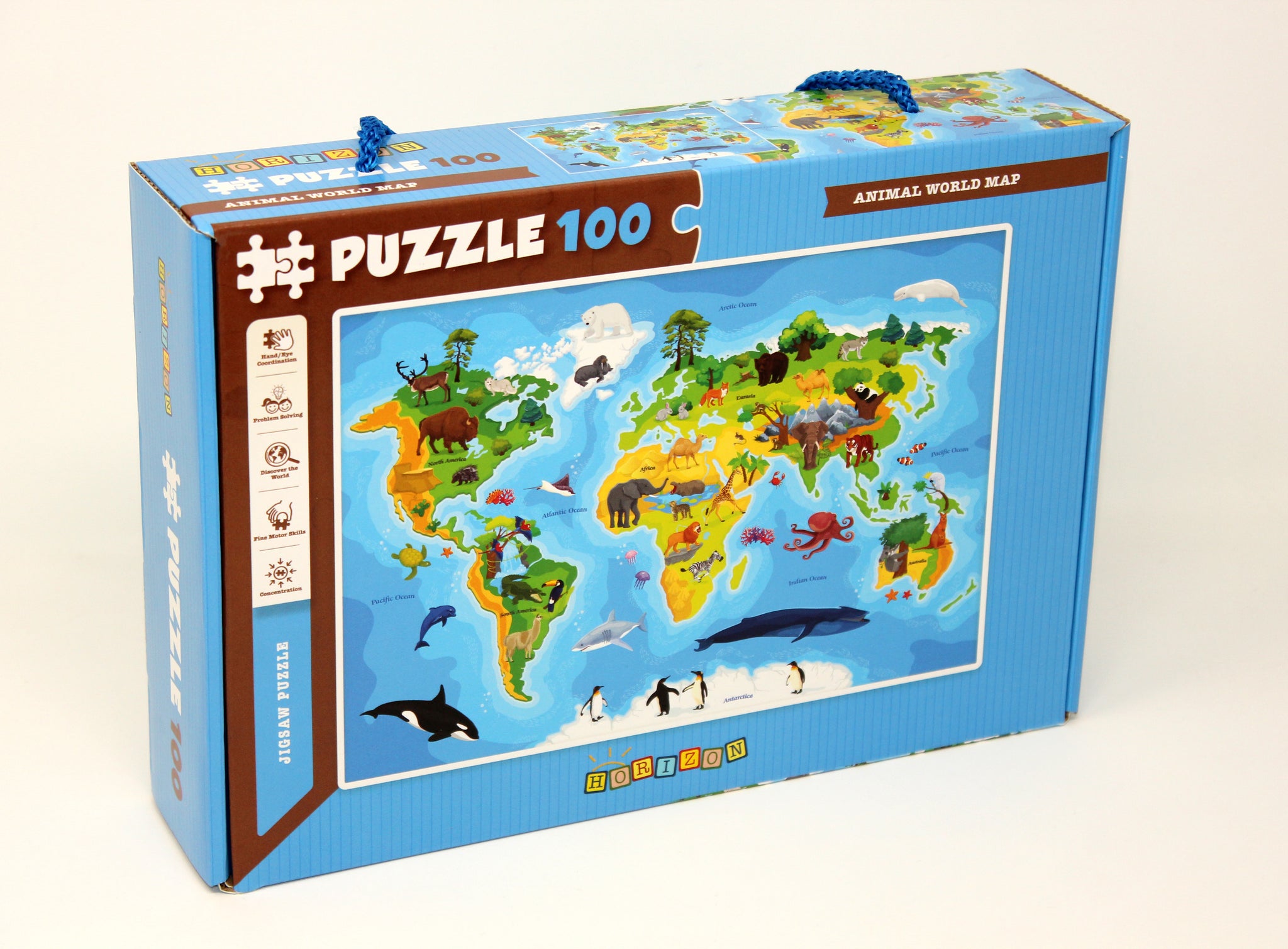 - Horizon Puzzle 100 Animal World Maps an early learning through play game for children above 5 year of age with 100 pieces.