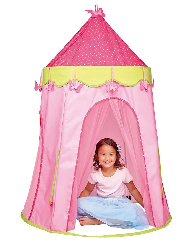 Adventures await in the J'adore Stars Wishes Play Tent 43.3 X 63 inches. It is an adorable pop-up tent for aspiring explorers! Suitable for ages 3 years and older, it's made out of durable, quality materials that are safe for kids. Big enough for a friend to join in, this roomy tent has two windows for ventilation and folds compactly for easy storage. This pop-up tent is portable and convenient to carry, making it a comfortable shelter on outdoor trips. With colorful, kid-friendly designs, this large pop-up tent is great for indoor and outdoor use.
