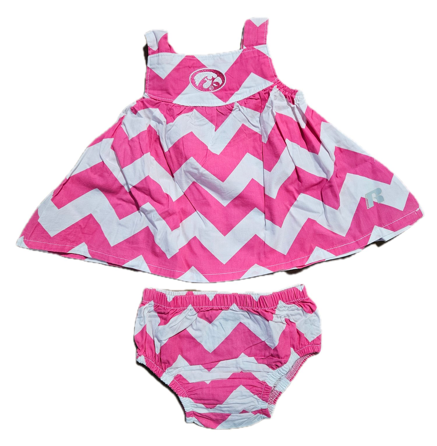 - Officially-licensed NCAA University of Iowa Hawkeyes Infant Girls’ Sleeveless Dress and Bloomers Set
