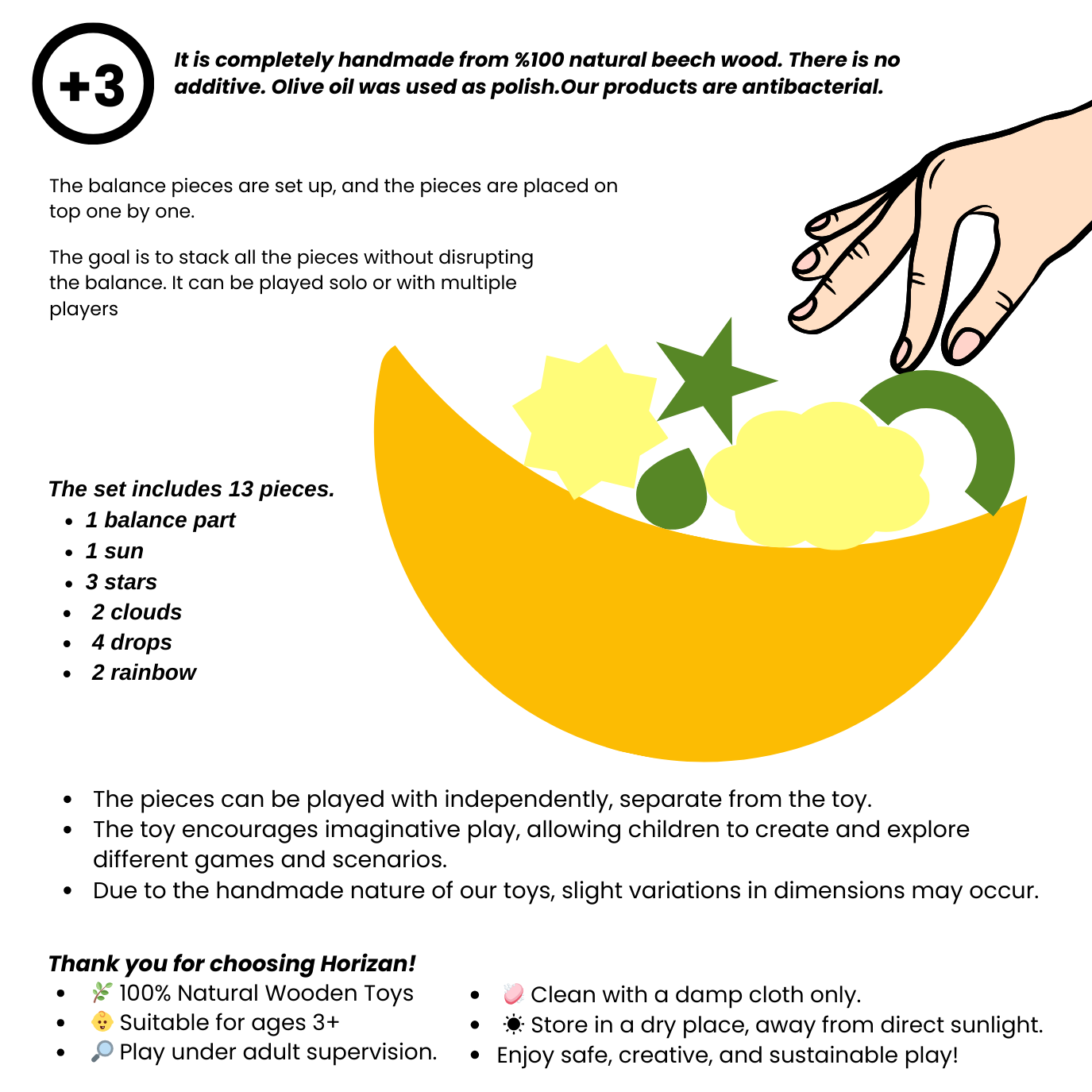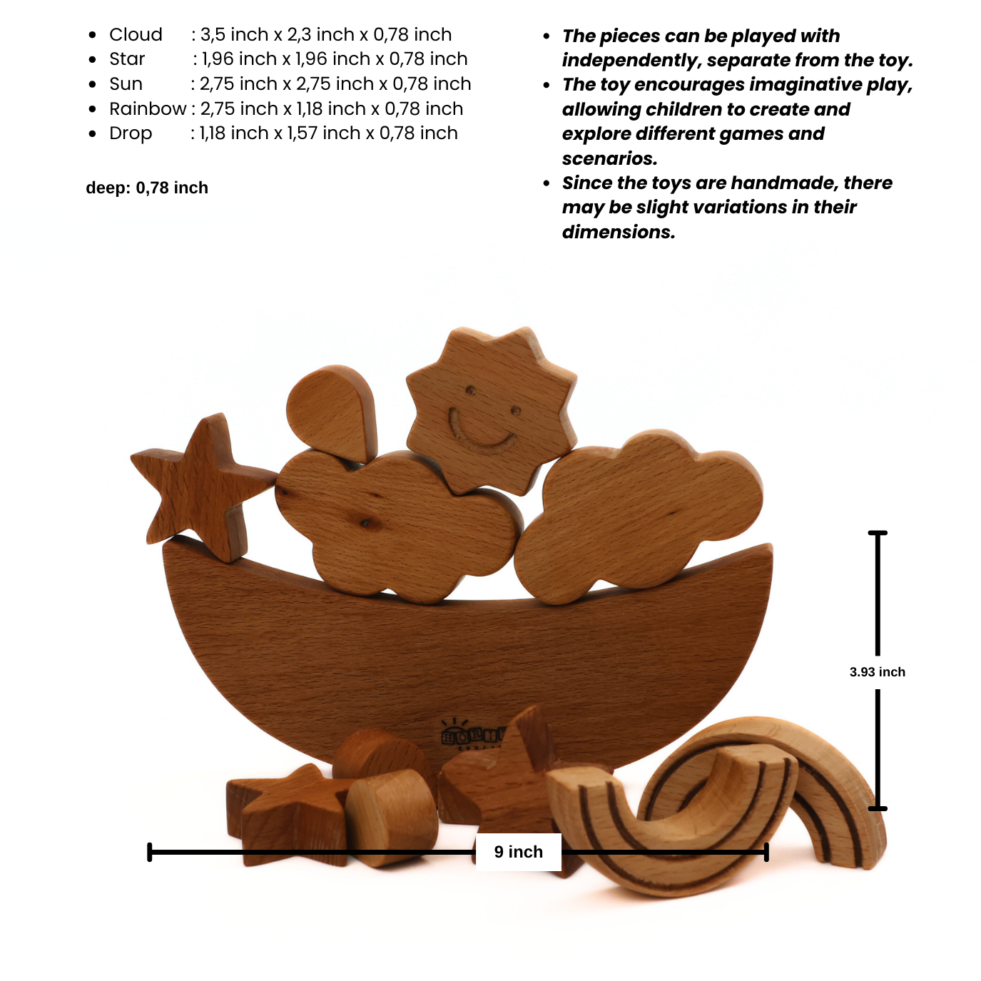 The Sky Balance Game offers a beautiful and engaging way for kids and adults to improve focus, patience, and coordination—while having fun together. Crafted by hand from 100% natural beech wood and polished with olive oil only, this eco-friendly, non-toxic toy is both safe and sustainable.