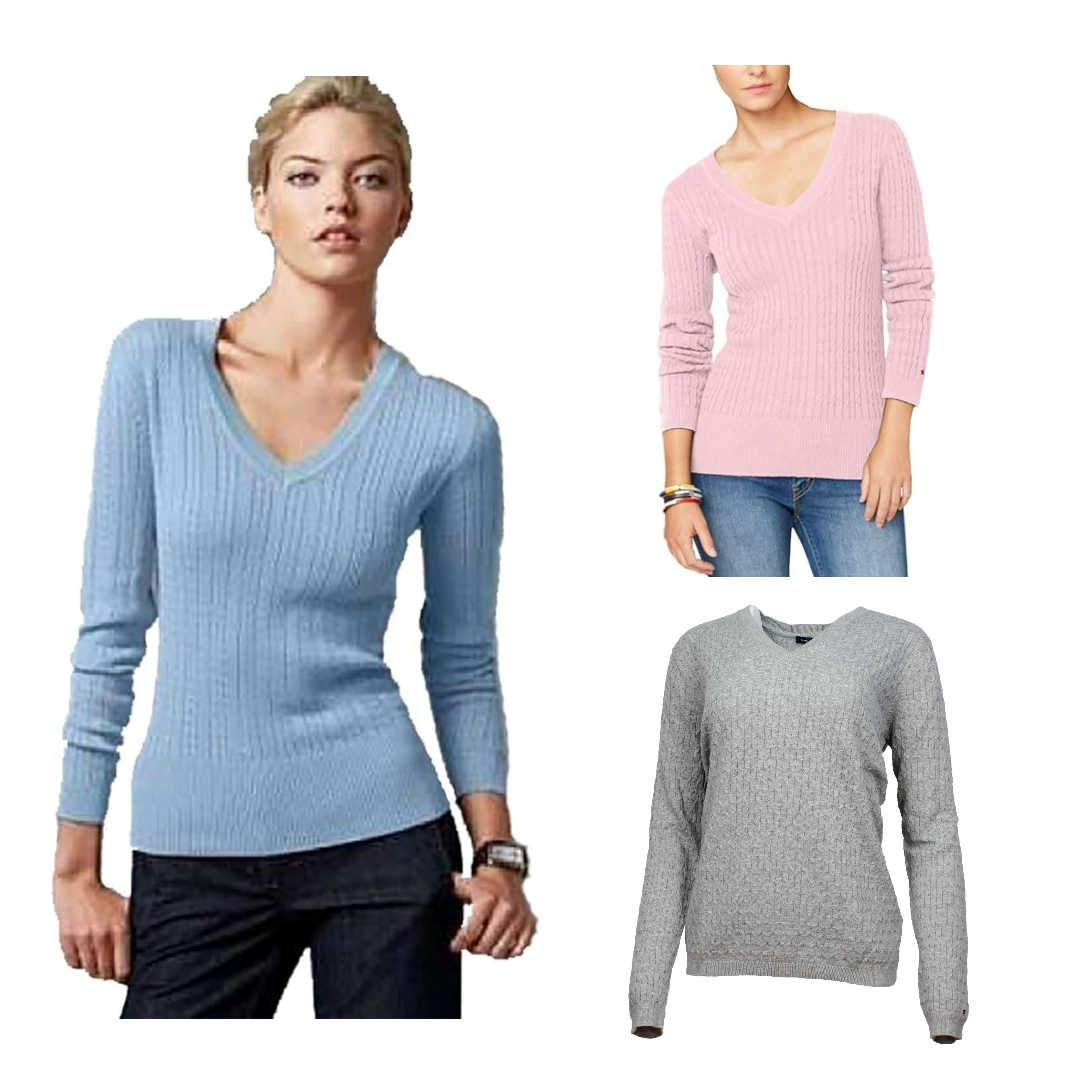 Tommy Hilfiger Women's Sweater V-Neck Pullover Lightweight Long Sleeve Knit New