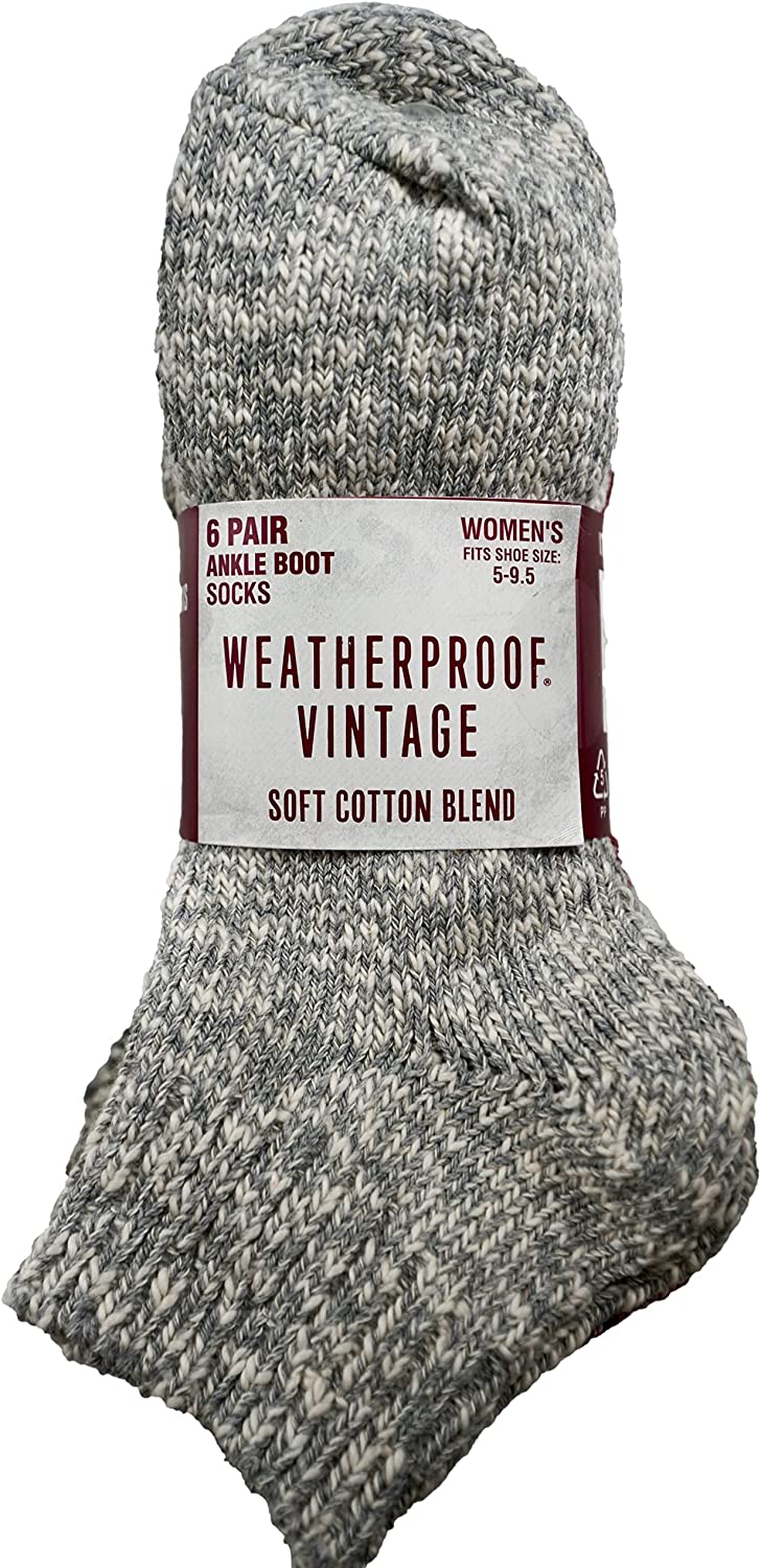 Weatherproof Legwear Women's Ankle Boot Socks Soft Cotton Blend, Black Gray Olive Red, 6 Pairs, Size 9.5