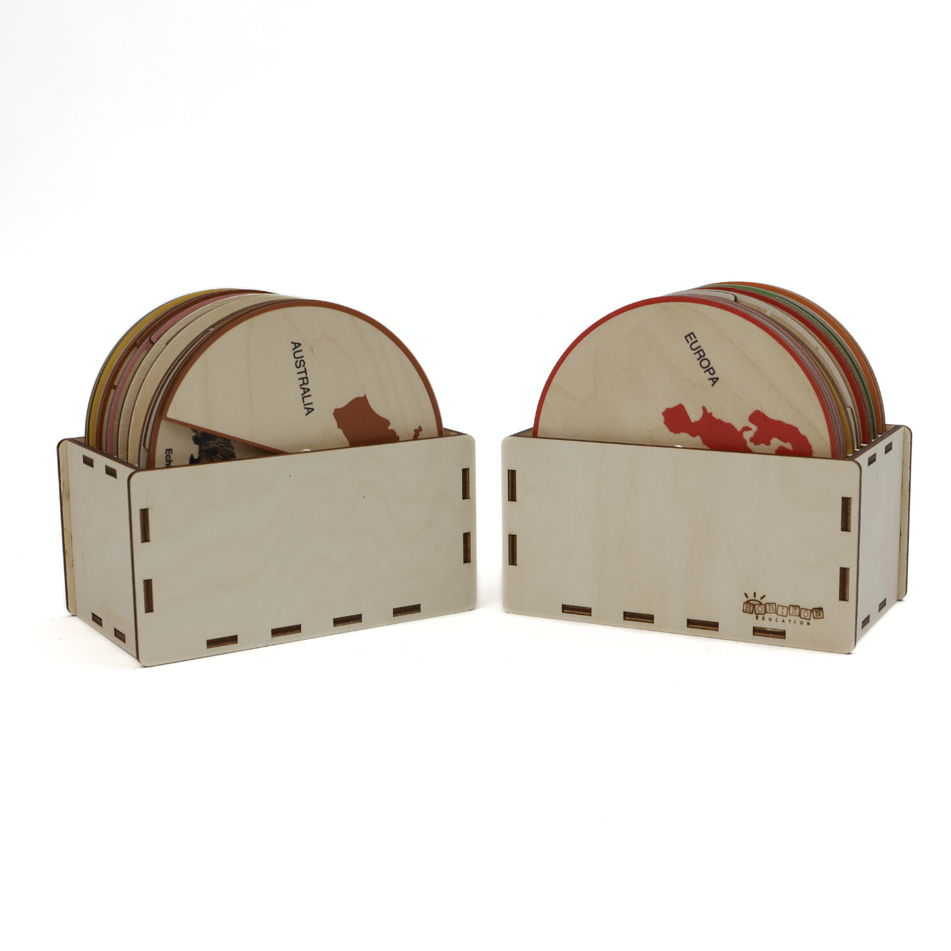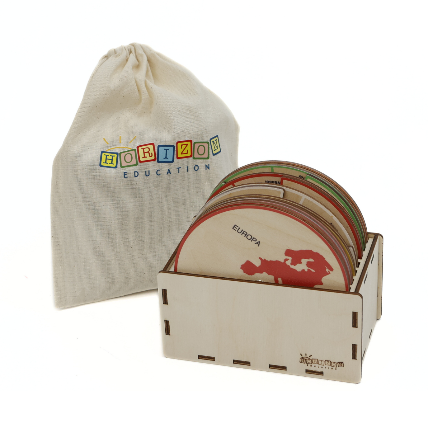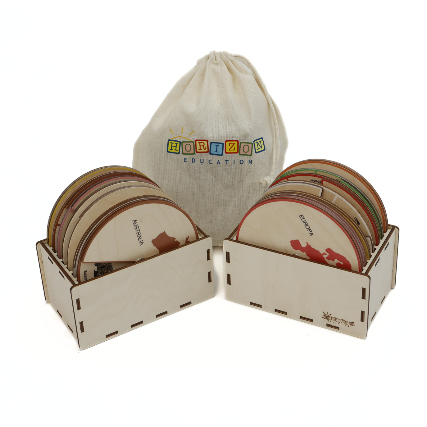 - Explore the World Through Animals – Includes 7 wooden wheels (one per continent) with a total of 42 animals to teach kids about global wildlife.