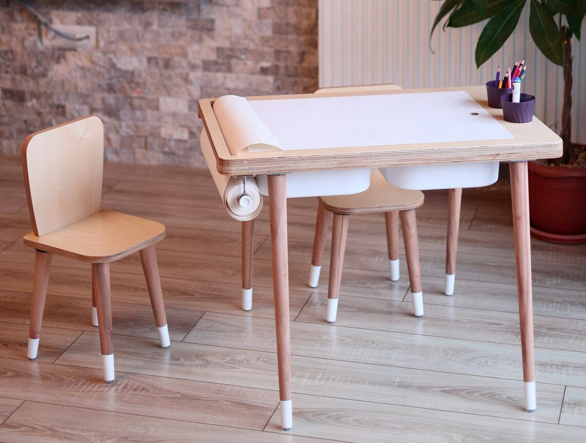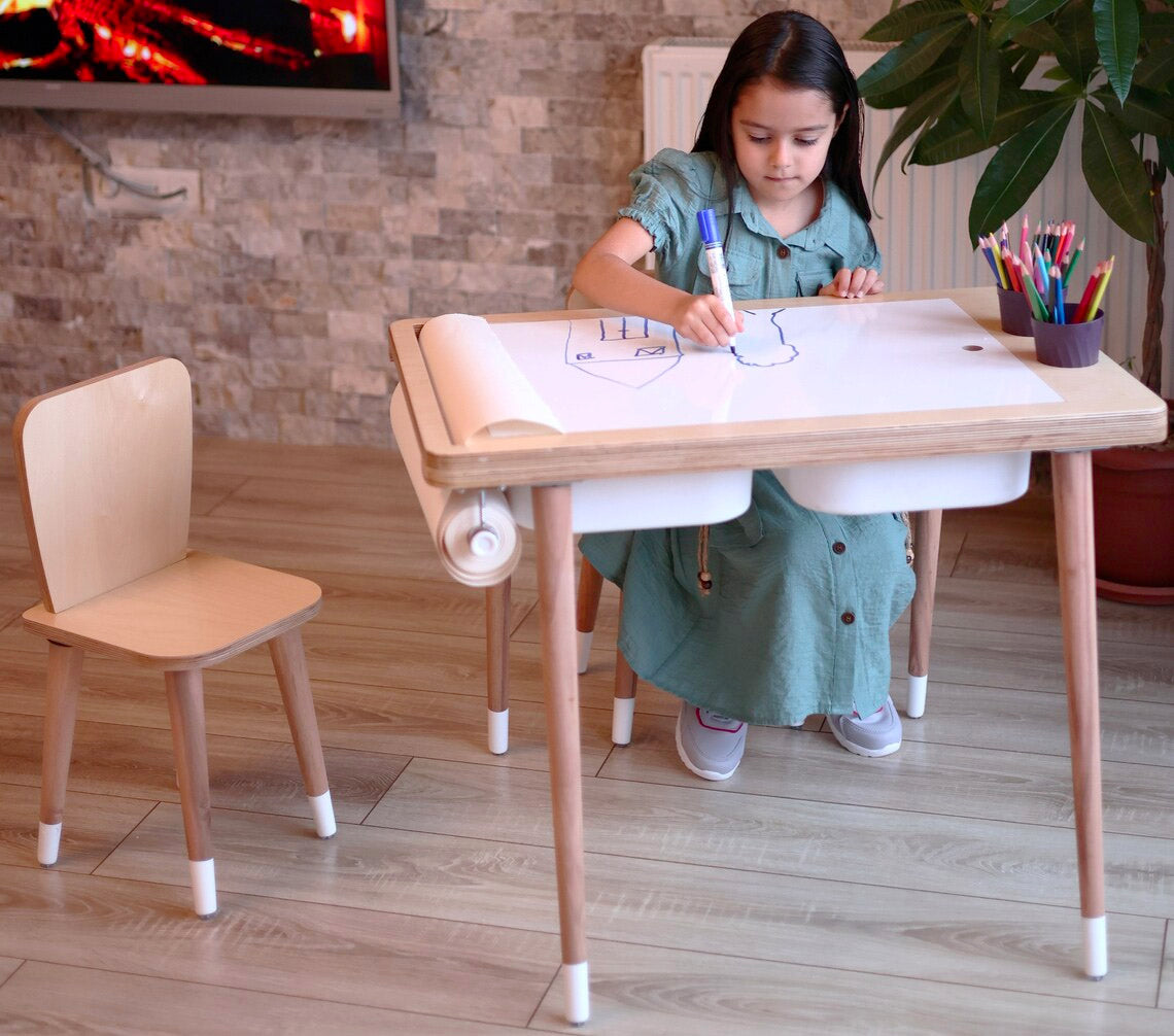- The table and chair legs have anti-slip protectors for your child's safety, and the MDF coatings on it can be used as both a normal table.